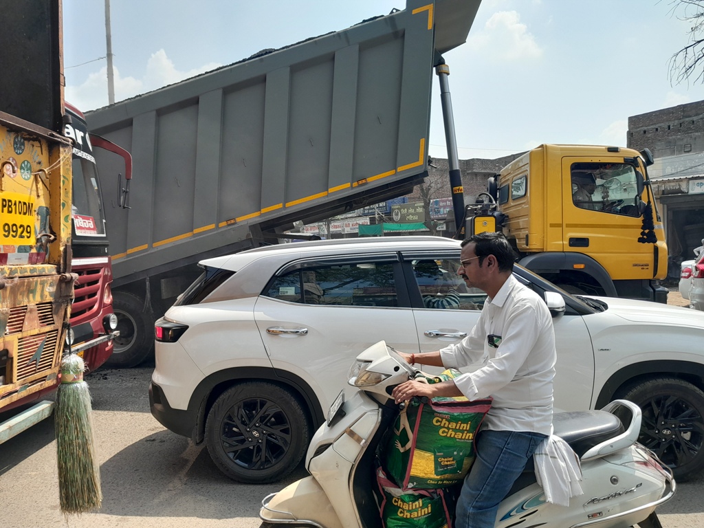 As the work was on at the peak traffic hours,at noon and on Monday, it led to the choking of the whole distance of about 1 kms of Moga road Kotkapura.